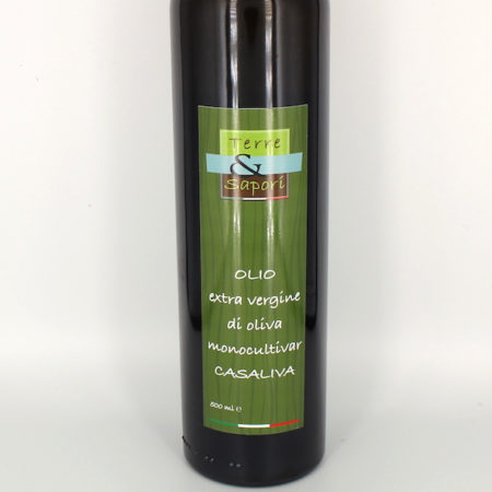 Caratteristiche: Olio extra vergine di oliva italiano di categoria superiore, estratto a freddo, ottenuto direttamente dalla spremitura mediante procedimenti meccanici di olive coltivate in Italia della varietà Casaliva, famosa fin dal XVI secolo e particolarmente apprezzata per il tipico sapore fruttato. Il nostro monocultivar Casaliva è un fruttato medio, caratterizzato da un alto contenuto di polifenoli e da una bassissima acidità.